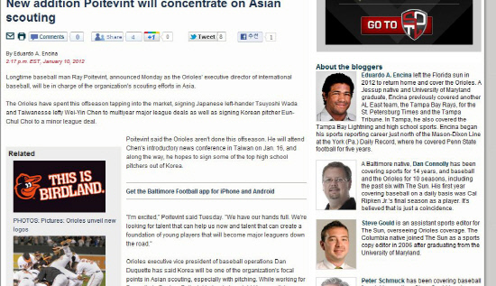 볼티모어 일간지 볼티모어선은 '포이트빈트가 볼티모어 구단은 아시아에서 더욱 더 적극적으로 나설 것이라고 공언했다'고 보도했다.