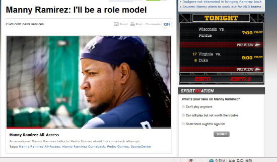 라미레즈는 지난해 초 돌연 은퇴를 선언했다. 2009년에 이어 두 번째로 금지약물 복용 사실이 적발돼 MLB 사무국으로부터 100경기 출전정지 징계를 받자 차라리 야구를 그만 두겠다고 은퇴를 해버린 것이다. 이후 그의 징계 수위는 50경기 출전정지로 경감됐지만 라미레즈는 잊혀지는 흘러간 스타였다.