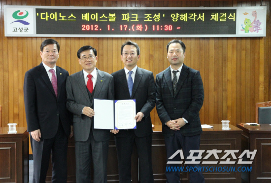 NC다이노스와 경남 고성군은 17일 고성군청 중회의실에서 NC다이노스 2군 훈련장에 대한 양해각서를 체결했다.