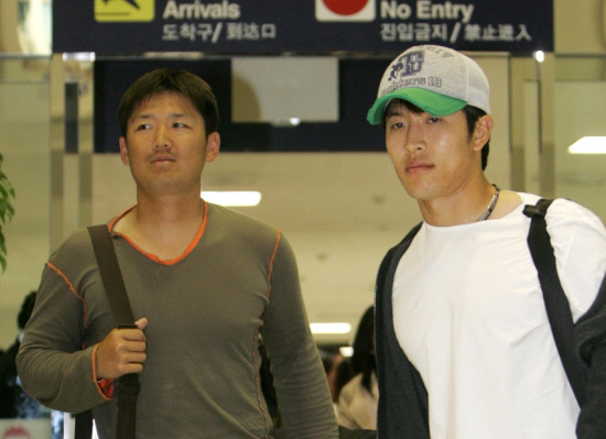 두산 김선우와 넥센에 입단한 김병현은 절친한 형, 동생 사이. 하지만 김선우조차 김병현의 입단 소식을 미리 알지 못했다. 지난 2006년 WBC 아시아 예선을 앞두고 대표팀 훈련을 위해 후쿠오카에 입국하는 모습.