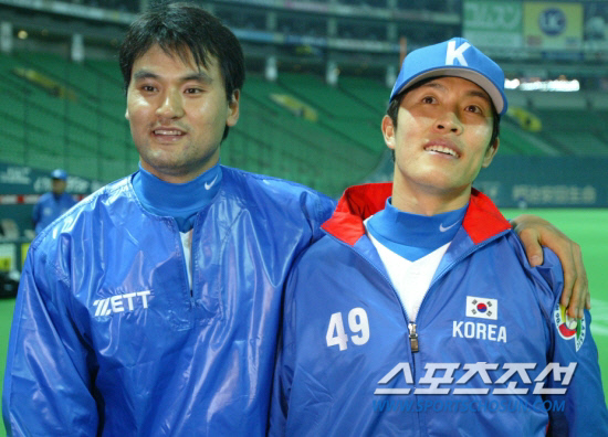 | 지난 2006년 WBC(월드베이스볼클래식) 한국 야구대표팀 소속이었던 박찬호와 김병현. 스포츠조선 DB |