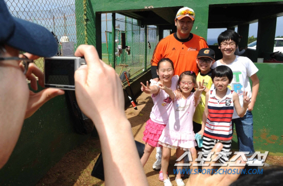 ◇롯데의 전지훈련이 펼쳐지고 있는 사이판 마리아나 구장이 한국인 관광객들에게 관광 명소가 되고 있다는 소식이다. 사진은 지난해 전지훈련 당시 롯데 소속이던 이대호가 현장을 찾은 팬들과 사진촬영을 하는 모습. 최문영 기자 deer@sportschosun.com