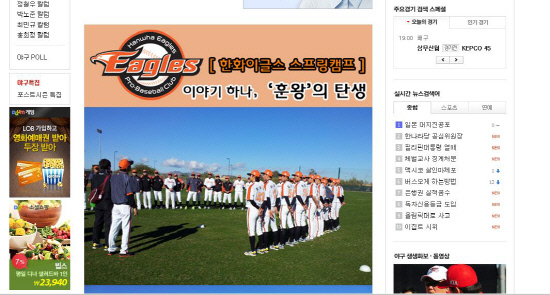 한화 구단은 이같은 사실을 독특한 포토 스토리를 통해 국내 팬들에게 알렸다. 한화는 국내 구단중 유일하게 포털 사이트 '다음'과 제휴해 전지훈련지 이모저모를 알리고 있다.