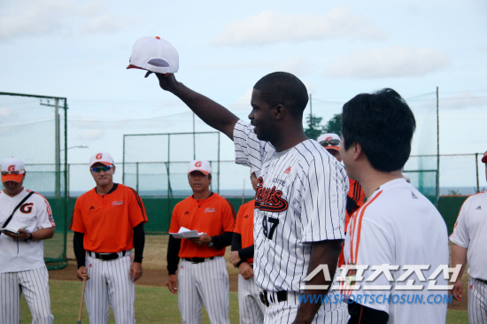 유먼은 사이판에 도착하자마자 동료들의 환대를 받으며 작은 선물을 하나 받았다. 글러브였다. 야수조의 맏형 조성환이 한국에서부터 준비한 선물이었다. 개인적인 인연도 없고, 야수 용병도 아닌데 왜 조성환이 선물을 챙겨준 것이었을까. 조성환은 "지난해 뛰었던 브라이언 코리가 처음 왔을 때 글러브를 선물했었다. 실제로 경기에 나갈 때 내가 선물한 글러브를 끼고 나갔다. 너무 좋아하던 모습이 아직도 눈에 선하다"며 "유먼도 좋아할 것 같아 한국에서 준비해왔다"고 설명했다.