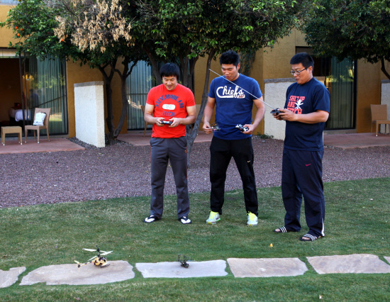 그렇다고 휴식시간을 마냥 방 안에 틀어박혀 보내기는 아쉽다. 그래서 김태균 등 3총사가 찾아낸 게 무선조종 헬기였다. 호텔 근처 선물용품점에서 각각 150달러를 주고 한 개씩 장만했단다.
