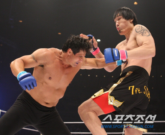 | 메이저리그 홈런왕 출신 호세 칸세코가 야구 복귀를 위해 멕시칸리그 트라이아웃에 참가한다. 지난 2009년 K1에서 활약할 당시 최홍만과 대결을 벌이는 칸세코. 사진=스포츠닛폰 본사제휴 |