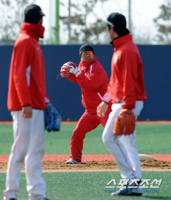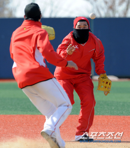 둘은 동료들이 비행기를 타고 미국에서 돌아오던 16일에도 송도LNG야구장에서 마지막 훈련을 했다. 바다 한 가운데에 있는 야구장이라 바람이 많은 곳. 전날엔 너무 추워 눈만 내놓고 얼굴까지 꽁꽁 싸맨채 훈련을 했던 이호준은 16일엔 아침 기온이 영하로 떨어졌음에도 예상외로 햇살이 비치고 바람이 잠잠하자 "아이고 이 정도만 돼도 감사하지"라며 마지막 땀방울을 쏟았다. "지금 당장 경기하면 이 기온에 익숙한 우리가 제일 잘하지 않을까요? 오키나와는 지금 10도가 넘는다는데 거기가면 우리 둘은 반팔로 뛰어도 될것 같은데…"라며 여전한 입담을 과시하기도 했다.