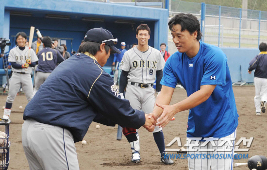 일본프로야구 오릭스에서 친정팀 삼성으로 복귀한 이승엽이 오릭스 선수단과 반갑게 해후했다.