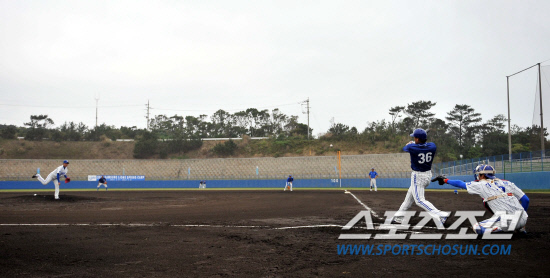 25일 일본 오키나와 아카마구장에서 열린 삼성의 전지훈련. 오전 훈련이 끝난 후 라이브배팅 훈련이 열렸다. 분위기는 그 어느 실전보다 엄숙해했다. 투수들은 온 힘을 다해 공을 던졌고 타자들도 집중해 공을 받아쳤다. 투수는 새 용병 탈보트와 안지만이 번갈아가며 나섰고 타석에는 이승엽, 채태인, 박석민, 진갑용, 박한이, 현재윤이 들어섰다. 가장 주목을 받은 선수는 바로 이승엽. 실전경기는 아니지만 실전과 같은 분위기 속에 열린 라이브배팅이기에 26일 한화와의 첫 연습경기를 앞두고 어떤 타구를 만들어낼지 궁금했다.