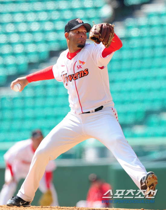 20일 인천 문학구장에서 2012 프로야구 시범경기 SK와 삼성의 경기가 열렸다. SK 선발 로페즈가 힘차게 공을 던지고 있다. 인천=정재근 기자 cjg@sportschosun.com/2012. 03. 20