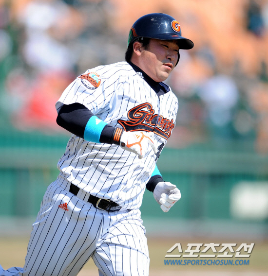 롯데와 LG의 2012 프로야구 시범경기가 24일 부산 사직구장에서 열렸다. 2회말 2사 롯데 이동훈이 좌전안타를 치고 1루로 뛰어나가고 있다. 부산=허상욱 기자 wook@sportschosun.com/2012.03.24/