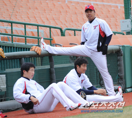 롯데와 KIA의 2012 프로야구 시범경기가 23일 부산 사직구장에서 열렸다. 경기 전 KIA 이범호가 스트레칭을 하고 있다. 부산=허상욱 기자 wook@sportschosun.com/2012.03.23/ |