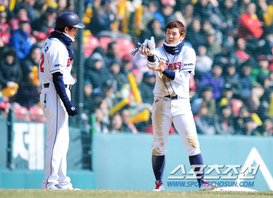 최주환은 "시범경기를 앞두고 마지막 연습경기(16일 부산 롯데전)에서 스타팅으로 나가 2타수 2안타 1볼넷을 쳤는데, 그때 못치면 2군으로 내려갈지도 모른다는 생각으로 경기에 임했다"며 "KIA 이용규 선배처럼 야무지고 쉽게 안무너지는 타격을 하는게 목표다. 컨택트에는 자신있다. 정확히 공을 맞히고 라인드라이브 타구를 만드는데 노력하고 있다"고 말했다.