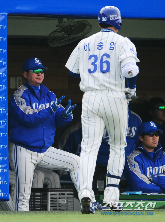 삼성 류중일 감독이 타격을 마치고 들어오는 이승엽을 박수로 맞아주고 있다. 대구=전준엽 기자 noodle@sportschosun.com
