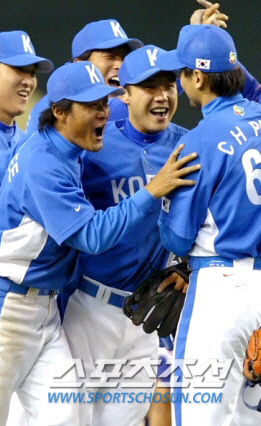 이종범과 박진만이 2006년 WBC당시 박찬호와 기뻐하는 모습. 박진만은 이종범의 은퇴소식에 크나큰 아쉬움을 전했다. 스포츠조선DB
