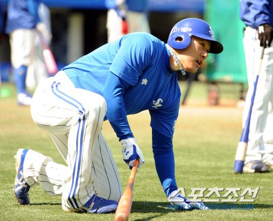 | 삼성 이승엽이 두산과의 경기에 앞서 타격 훈련 도중 잠시 휴식을 취하고 있다. 이승엽은 KIA 이종범의 은퇴에 대해 충격이라는 표현을 썼다. 대구=전준엽 기자 noodle@sportschosun.com |