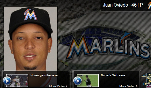 | 레오 누네스란 이름으로 살아온 마이애미 마무리 투수 후안 오비에도. 화면캡쳐=메이저리그 홈페이지 |