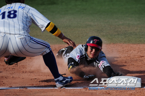 그렇다면 야구선수가 3루까지 어느 정도 시간내에 도착해야 빠르다는 평가를 들을까. 보통 11초20~11초30 이내면 굉장히 빠른 것이라 한다. 치는 순간부터 곧바로 달린 케이스다. 이 기준은 달라질 수도 있다. '딱' 하는 순간부터 재느냐, 한발 뗄 때부터 측정하느냐는 다를 수 있다는 것이다. 어쨌든 오지환 케이스가 전형적인 '3루타 러닝'의 모범사례인 셈이다.