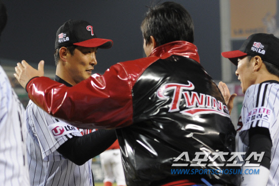 류택현도 행복하고, 그를 바라보는 팬들도 즐겁다. 고참 선배 투수의 대기록을 위해 야수들도 최선을 다했다.