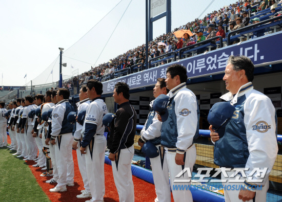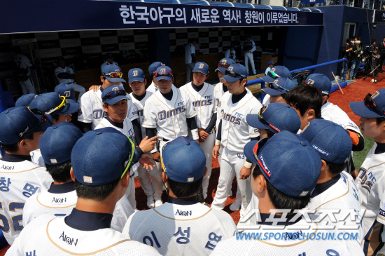 14일 경남 창원 마산야구장에서 NC다이노스 창단 및 홈 개막 경기가 열렸다. 김경문 감독과 선수들이 마산야구장에서 열린 홈 개막 경기에 임하고 있다. 창원=송정헌 기자 songs@sportschosun.com/2012.4.14