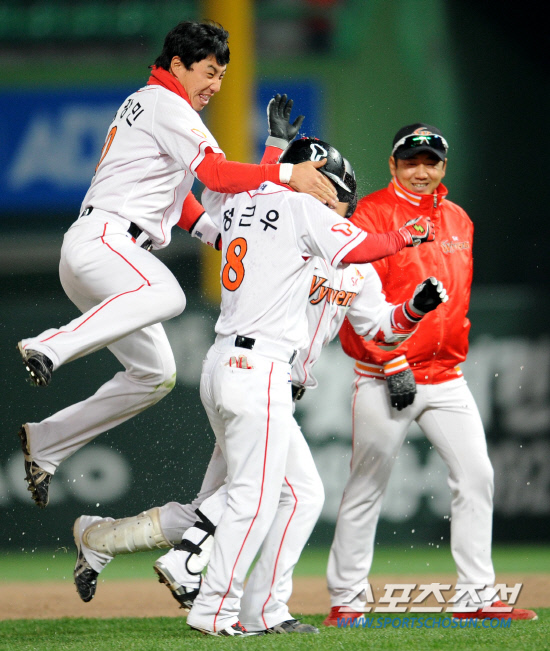 그런데 한화 마운드에 선 바티스타는 그대로 정근우와 승부를 했다. 정근우는 볼카운트 2S에서 바깥쪽 낮은 직구를 툭 밀었고, 우익수와 1루수가 잡을 수 없는 곳으로 가 올시즌 첫 끝내기 안타가 됐다.