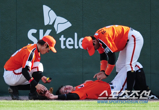 정원석은 한동안 일어나지 못하다가 앰블런스에 실려 나갔고, 오른쪽 엄지 탈골이라는 진단을 받았다. 정원석이 충돌했을 당시 상대팀 관중도 깜짝 놀랄 만큼 아찔한 장면이었다.