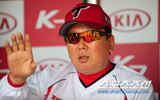 24일 오후 광주 무등구장에서 2012 프로야구 한화와 KIA의 경기가 열렸다. 시합 전 KIA 선동열 감독이 취재진과 이야기를 나누고 있다. 광주=김경민 기자 kyungmin@sportschosun.com / 2012.04.24.