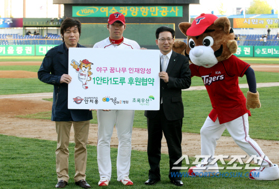 안치홍은 이날 경기에 앞서 '밝은안과21병원' 주종대 원장과 어린이재단 광주지역본부 최삼영 본부장 등이 참석한 가운데 '야구 꿈나무 인재 양성 1안타 1도루 후원 협약식'을 치렀다. 이 협약에 따라 안치홍은 올 시즌 1안타 및 1도루 당 각 1만원을 적립해 시즌 종료 후 어린이재단에 기부한다.