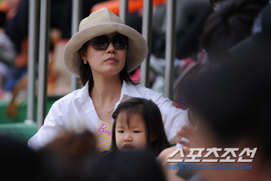 박리혜씨는 세린 양의 두 발을 모아 박수를 치는 등 두 딸과 간간이 놀아주느라 정신이 없는 모습이었다. 그나마 짬이 생기는 경우는 한화가 공격으로 전환됐을 때였다.