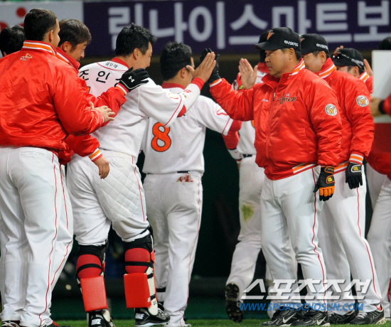 "4월에만 4∼5번 정도 문자메시지를 받은 것 같다"는 조인성은 "'낯선 팀에 와서 적응 잘하고 팀을 잘 이끌어줘서 고맙다'는 메시지를 받았다. 감사했다"고 했다. 5∼6번 정도 받은 것으로 기억하는 이호준은 "'난 너를 믿는다', '정신적으로 힘들겠지만 힘내라' 등 위로의 얘기를 많이 해주셨다"면서 "그럴 때 '최선을 다하겠습니다', '노력하겠습니다', '열심히 하겠습니다' 등의 답문을 보낸다"고 했다. 불펜에서 최고의 활약을 보여주고 있는 박희수와 정우람은 두번 밖에 받지 않았다고.