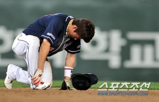 두산 고영민이 발목 통증이 도져 교체됐다.