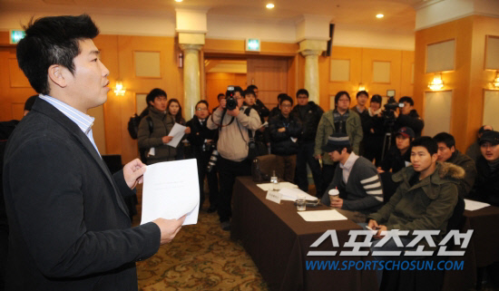 지난 1월 프로야구 선수협회 박재홍 회장이 서울의 모호텔에서 열린 임시총회에서 선수들에게 얘기를 하고 있다. 전준엽 기자 noodle@sportschosun.com