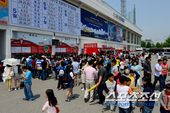 5월5일 어린이날을 맞아 광주 무등야구장에서 열린 프로야구 KIA와 넥센의 경기를 많은 야구 팬들이 찾았다. 부모들의 손을 잡고 야구장을 찾은 많은 어린이들이 야구를 보기 위해 기다리고 있다. 경기가 열리기 3시간 전부터 표를 구하기 위해 줄을 서 있는 야구 팬들. 광주=송정헌 기자 songs@sportschosum.com/2012.5.5
