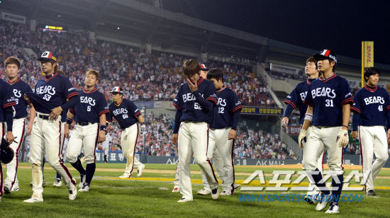 | 두산 선수들이 20일 라이벌 LG에 충격의 패배를 당한 뒤 그라운드를 빠져나오고 있다. 잠실=조병관 기자 rainmaker@sportschosun.com |