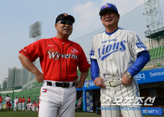 SK 이만수 감독과 삼성 류중일 감독이 25일 대구시민야구장에서 펼쳐질 경기에 앞서 인사를 나누고 있다. 대구=전준엽 기자 noodle@sportschosun.com