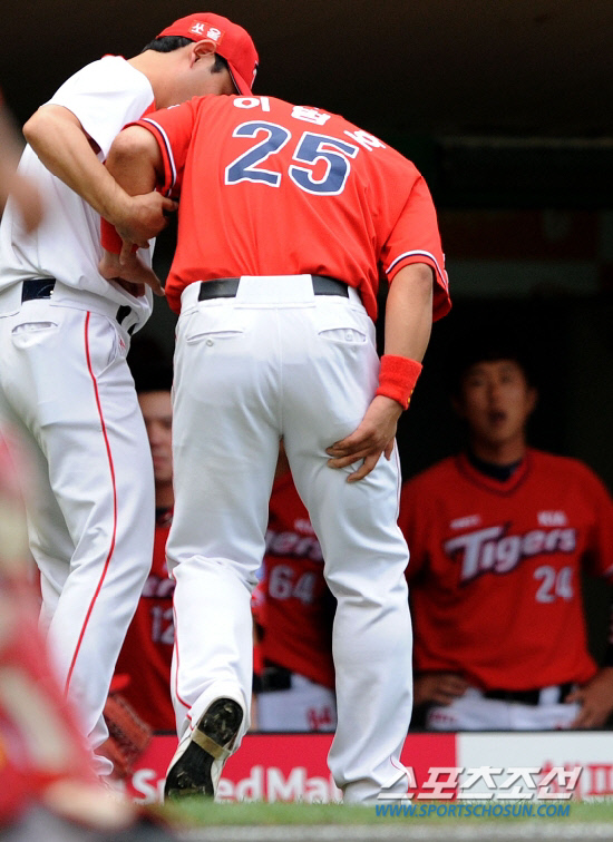 KIA 이범호는 지난해 8월7일 인천 SK전에서 홈으로 들어오다 포수와 충돌을 피하기 위해 갑작스레 멈추는 과정에서 오른쪽 햄스트링이 파열됐다. 시즌이 끝날 때까지 완전히 회복하지 못했다. 이번 시즌 초에는 반대편인 왼쪽 햄스트링에 통증을 호소했다. 1군 복귀를 했지만 여전히 불안하다. 30일 잠실 두산전에서는 오른쪽 정강이 통증으로 선발 출전하지 못했다. 햄스트링 부상에서 오는 전형적인 전염성 부상형태다. 햄스트링은 이범호 개인을 넘어 KIA의 올시즌 행보에 드리운 불안요소다.