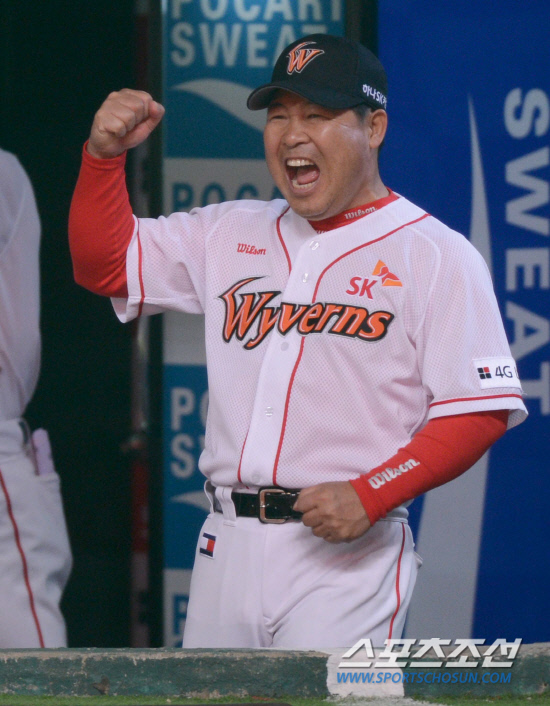 1일 오후 인천 문학구장에서 2012 프로야구 KIA와 SK의 경기가 열렸다. 9회초 SK 박희수가 KIA 김원섭을 삼진 처리하자 덕아웃의 이만수 감독이 환호하고 있다. 인천=김경민 기자 kyungmin@sportschosun.com