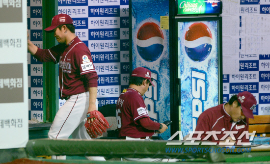 | 롯데가 6월1일 부산 사직구장에서 넥센과 주말 3연전 첫 경기를 가졌다. 선발로 등판한 넥센 김병현이 4회 2사에서 강판 당했다. 김병현은 3⅔이닝 투구하며 6실점하며 마운드를 내려왔다. 쓸쓸히 덕아웃을 나서고 있는 김병현(왼쪽). 부산=송정헌 기자 songs@sportschosum.com |