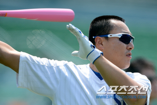 삼성과 두산의 주말 3연전 마지막날 경기가 3일 대구구장에서 열렸다. 경기 전 머리를 짧게 자른 삼성 이승엽이 스윙 연습을 하고 있다. 대구=허상욱 기자 wook@sportschosun.com/2012.06.03/