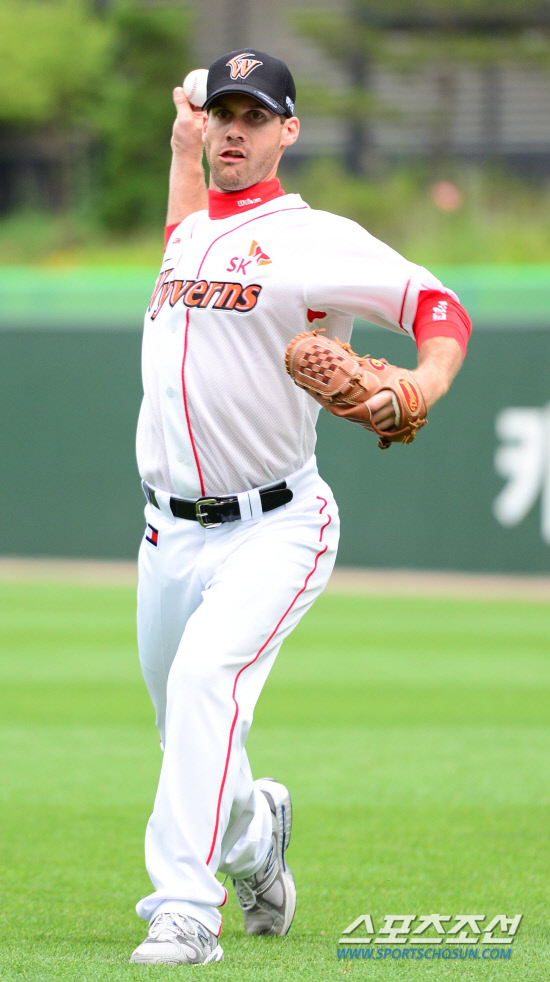 | SK 새 외국인 투수 데이브 부시가 캐치볼로 몸을 푸는 모습. 보시는 오는 16일 인천 한화전서 첫 선을 보인다. 인천=송정헌 기자 songs@sportschosum.com |