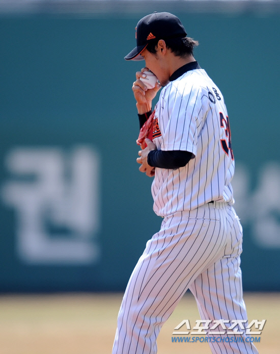 | 롯데 이용훈이 부정투구 논란에 휩싸였다. 사진은 지난 3월24일 부산 사직구장에서 열린 LG와의 시범경기 때 1회초 마운드에 오르며 공에 입을 맞추고 있는 이용훈. 스포츠조선DB |