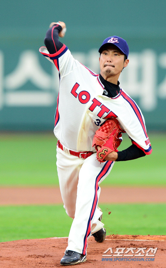 30일 부산 사직구장에서 열린 프로야구 롯데와 LG의 경기에서 선발로 등판한 롯데 이용훈이 힘차게 공을 던지고 있다. 부산=송정헌 기자 songs@sportschosum.com/2012.5.30