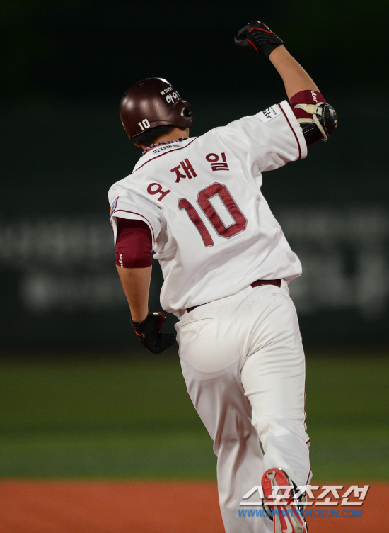 오재일은 13일 목동 KIA전에 7번 지명타자로 선발 출전해 팀이 1-2로 뒤지던 2회말 1사 후 동점 솔로홈런을 날렸다. KIA 선발 서재응이 볼카운트 2B에서 던진 3구째 낮은 체인지업을 밀어쳐 좌측 담장을 살짝 넘는 동점포를 쏘아올렸다. 이로써 오재일은 지난 5월 19일 목동 삼성전 이후 25일 만에 시즌 4번째 홈런을 기록하게 됐다. 목동=이원만 기자 wman@sportschosun.com