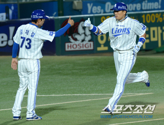 이승엽은 이날 0-1로 뒤져있던 1회말 동점 적시타를 날리는 등 6회까지 4타수 3안타의 맹타를 휘두르고 있다.