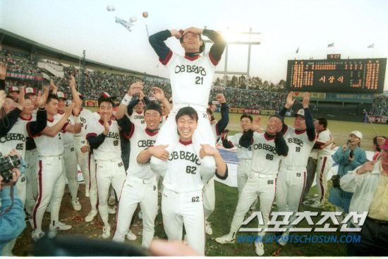 그해 8월27일 2위 OB는 선두 LG와 6게임차였다. 그후 OB는 14경기에서 12승2패를 거두며 뚝심을 발휘했다. OB가 그즈음 해태와의 광주 4연전을 쓸어담고 1위에 오르자 LG가 해태를 원망했다는 얘기도 있었다. 13년만에 우승을 차지한 OB는 전년도 7위에서 일약 챔피언으로 점프하는 영광을 누렸다.