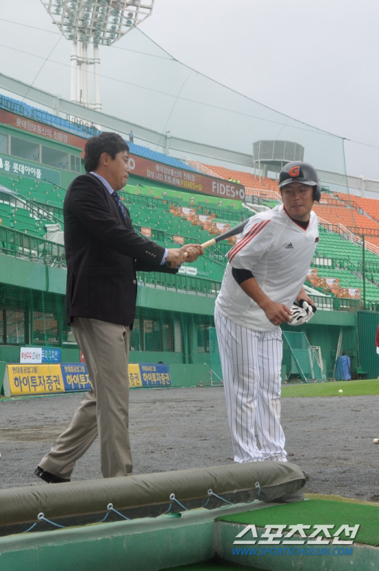 넥센과 롯데의 경기가 열린 17일 목동구장. 홈팀 넥센이 더운 날씨 탓에 일찌감치 훈련을 끝마쳤고 땀을 뻘뻘 흘리며 훈련을 하던 롯데 선수들이 하나둘씩 덕아웃으로 들어온다. 그 중 강민호가 덕아웃에 있던 양준혁 SBS ESPN 해설위원을 발견한다.
