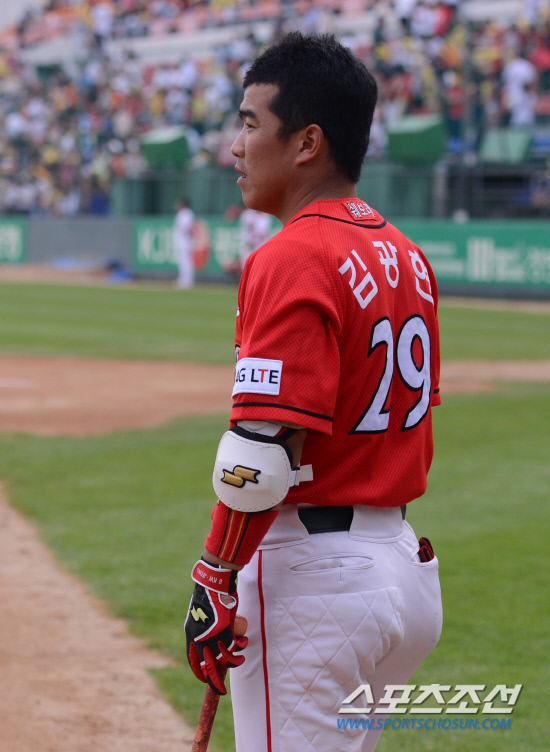 정근우는 22일 광주 KIA전에 김광현의 이름과 배번 29번이 새겨진 유니폼을 입고 그라운드에 섰다. 자신의 유니폼을 인천에 두고 온 탓이다.
