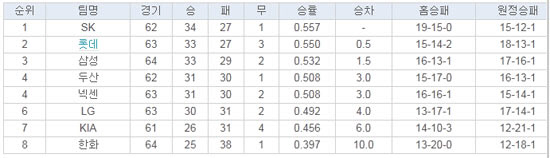 - 홈 : 삼성을 불러들여 5승 1패로 강세 롯데와 엘지를 만나 모두 3전 3패