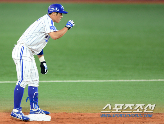 김강민도 최형우 처럼 대구구장의 하늘을 원망할 수밖에 없었다. 대신 행운이 따른 3타점 적시타를 기록한 조동찬은 하늘을 향해 절을 해야 했다. 대구=노주환 기자 nogoon@sportschosun.com