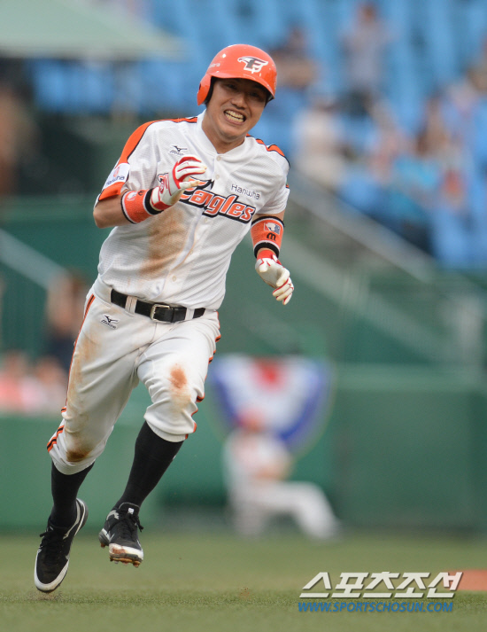 프로야구 한화와 두산의 경기가 22일 대전 한밭야구장에서 펼쳐졌다. 1회말 2사 2루타를 날린 장성호가 김태균의 적시타때 홈을 밟고 있다. 대전=전준엽 기자 noodle@sportschosun.com